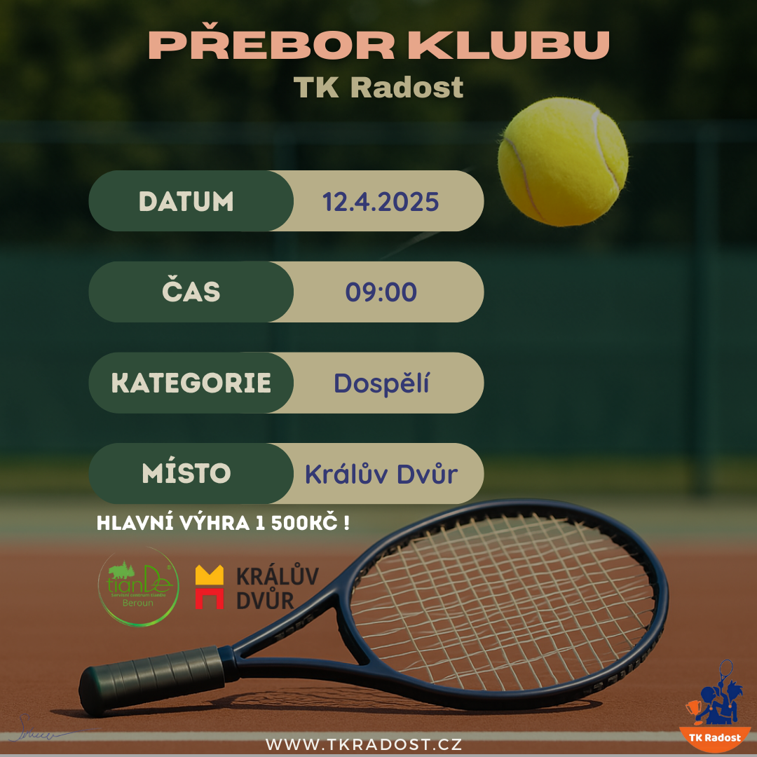 Již tuto sobotu pořádáme přebor klubu. Přihlásit se můžete u Mirka Šilhavého na tel. čísle: 608 529 037 do pátku. V pátek proběhne rozlosování přihlášených hráčů do skupin. Těšíme se na Vás!